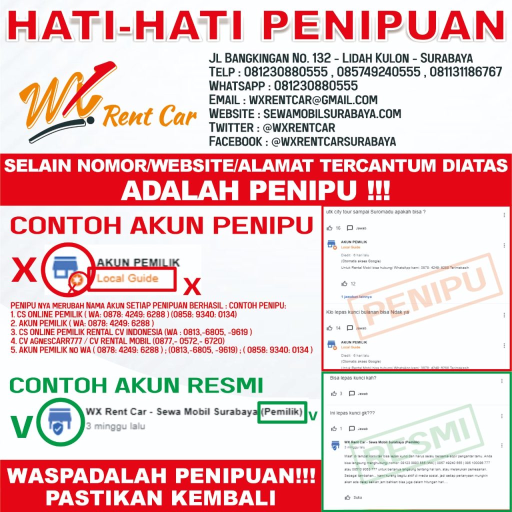 Telah jatuh banyak korban penipuan sewa mobil di surabaya akhir-akhir ini. Rata-Rata Korban adalah Calon Customer yang ingin sewa mobil